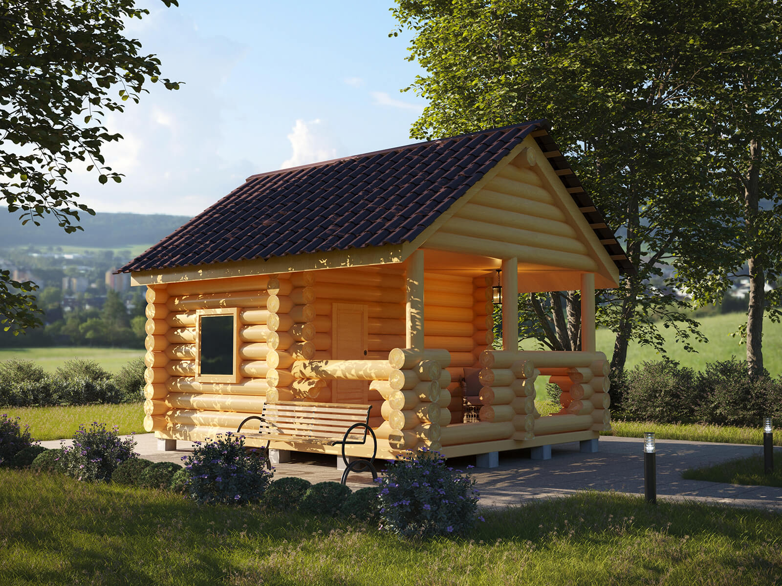 Сруб бани 5х4 из бревна с террасой